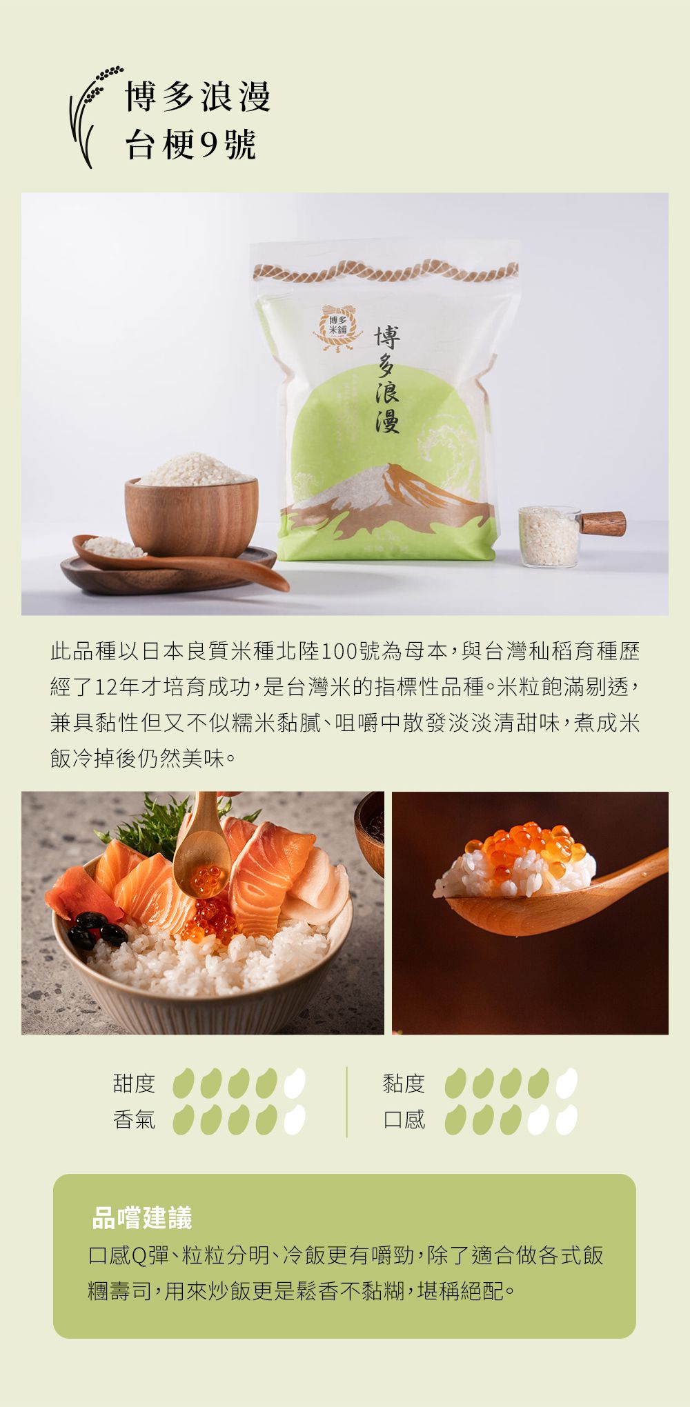 1. 日台米種精粹米粒柔軟彈Q